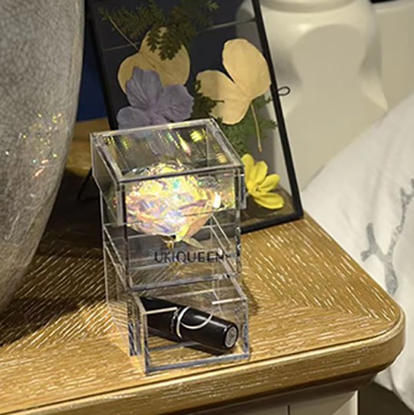 - Design: High-clarity acrylic box with hidden jewelry drawer