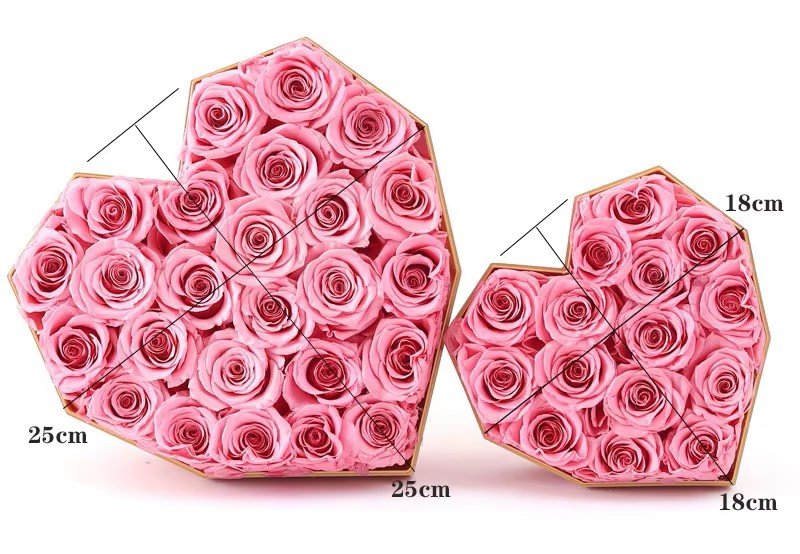 • Roses: A-grade preserved roses (4–5 cm diameter)