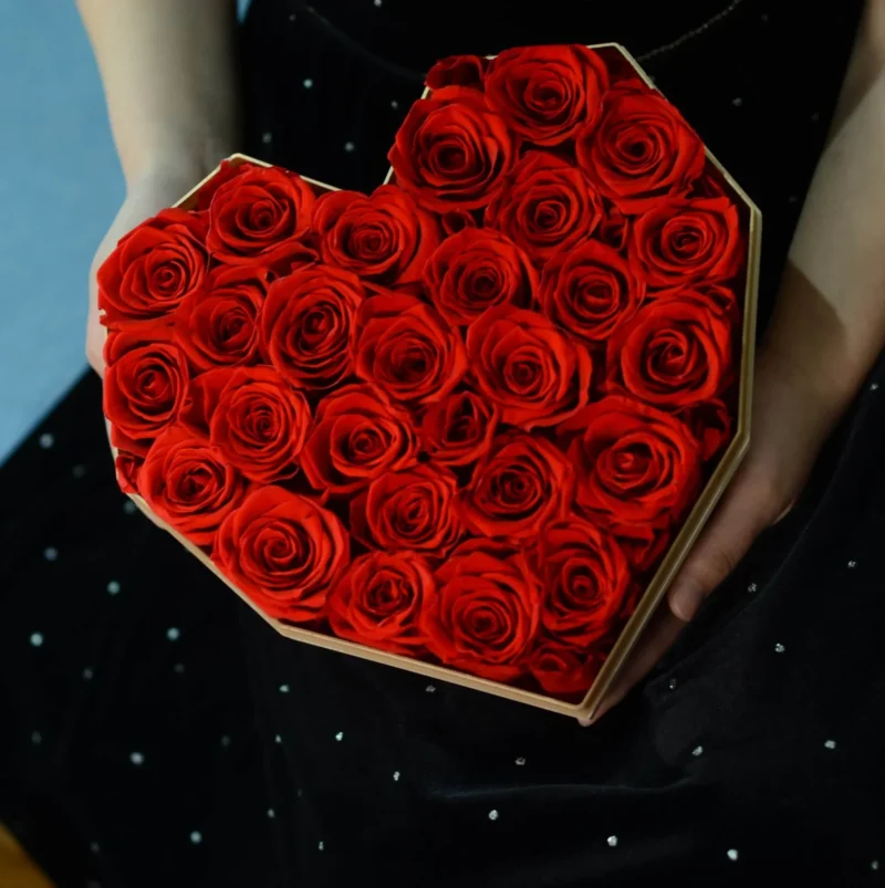 Searching for the perfect Valentine’s Day preserved rose gift? This diamond heart preserved rose gift box features a modern geometric diamond-cut heart box filled with eternal roses in a romantic heart-shaped dome arrangement – an unforgettable symbol of lasting love that stays beautiful for 3–5 years.