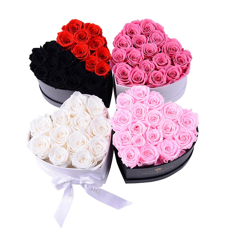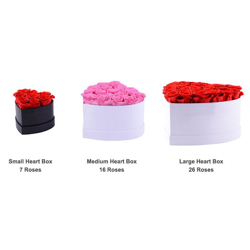 Customizable heart-shaped gift boxes filled with preserved roses. Available in multiple sizes and colors, A-grade quality for lasting 2–3 years. Factory-direct wholesale with OEM options for branding, packaging, and personalization – perfect for anniversaries, weddings, and romantic gifting.