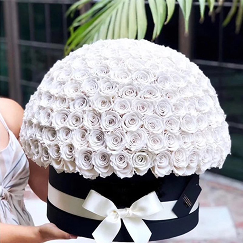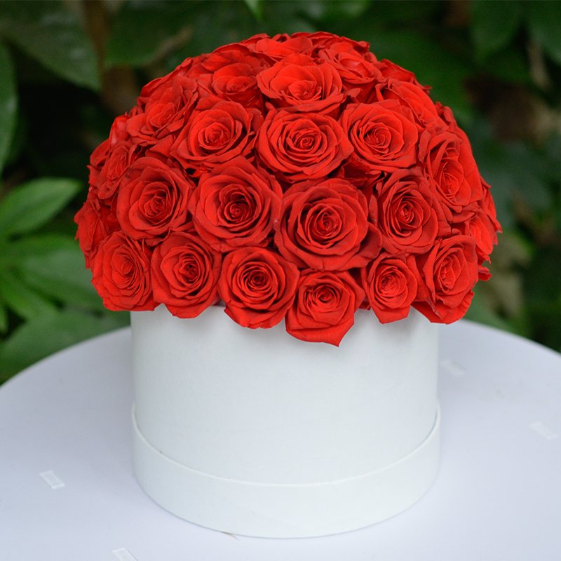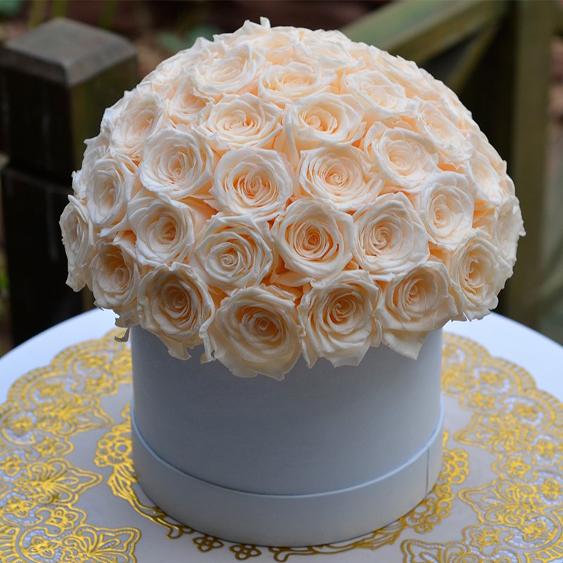 Luxury dome-top preserved rose gift box • 100% real A-grade roses hand-arranged into perfect dome shape.