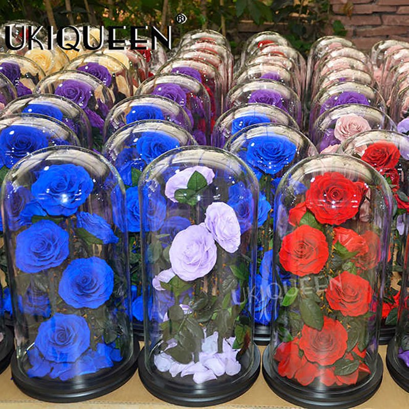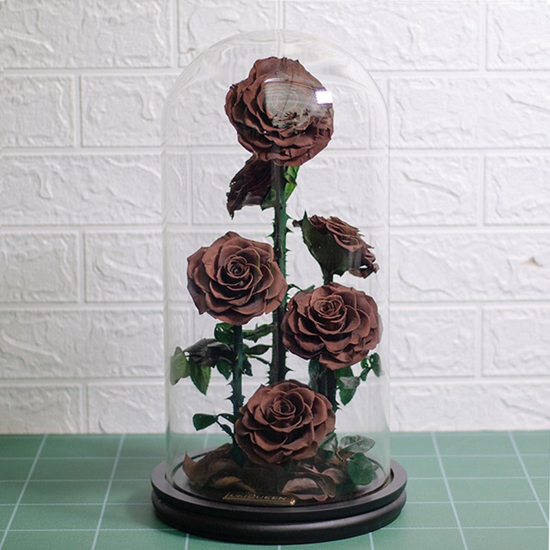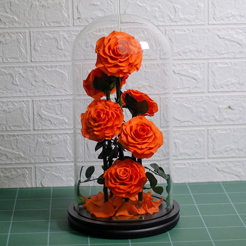 Grand 20×40cm preserved 6 roses in glass dome with optional LED base • 100% real A-grade roses preserved through professional dehydration & dyeing process, lasting 2–3 years without any care.