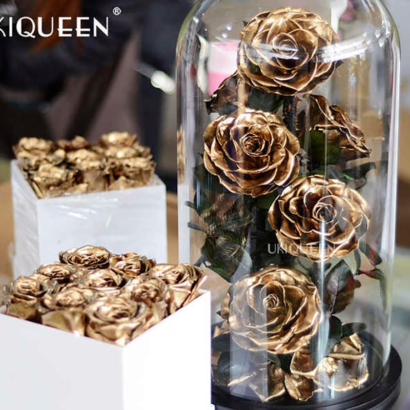 Large 8–10cm rose heads arranged with natural stems for stunning visual impact. Available in 30+ vibrant colors: classic red, wine red, gold, rainbow, pink, blue, purple, black, champagne, gradient, etc. Handcrafted in Yunnan factory.
