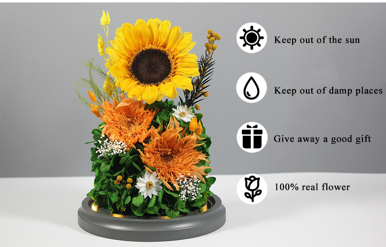 - Product Name: Preserved Sunflower Glass Dome (Sunshine Series)