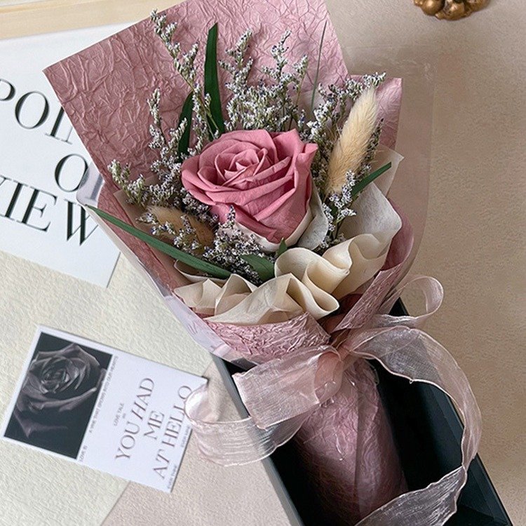 The most classic eternal love gift – single stem preserved rose bouquet.